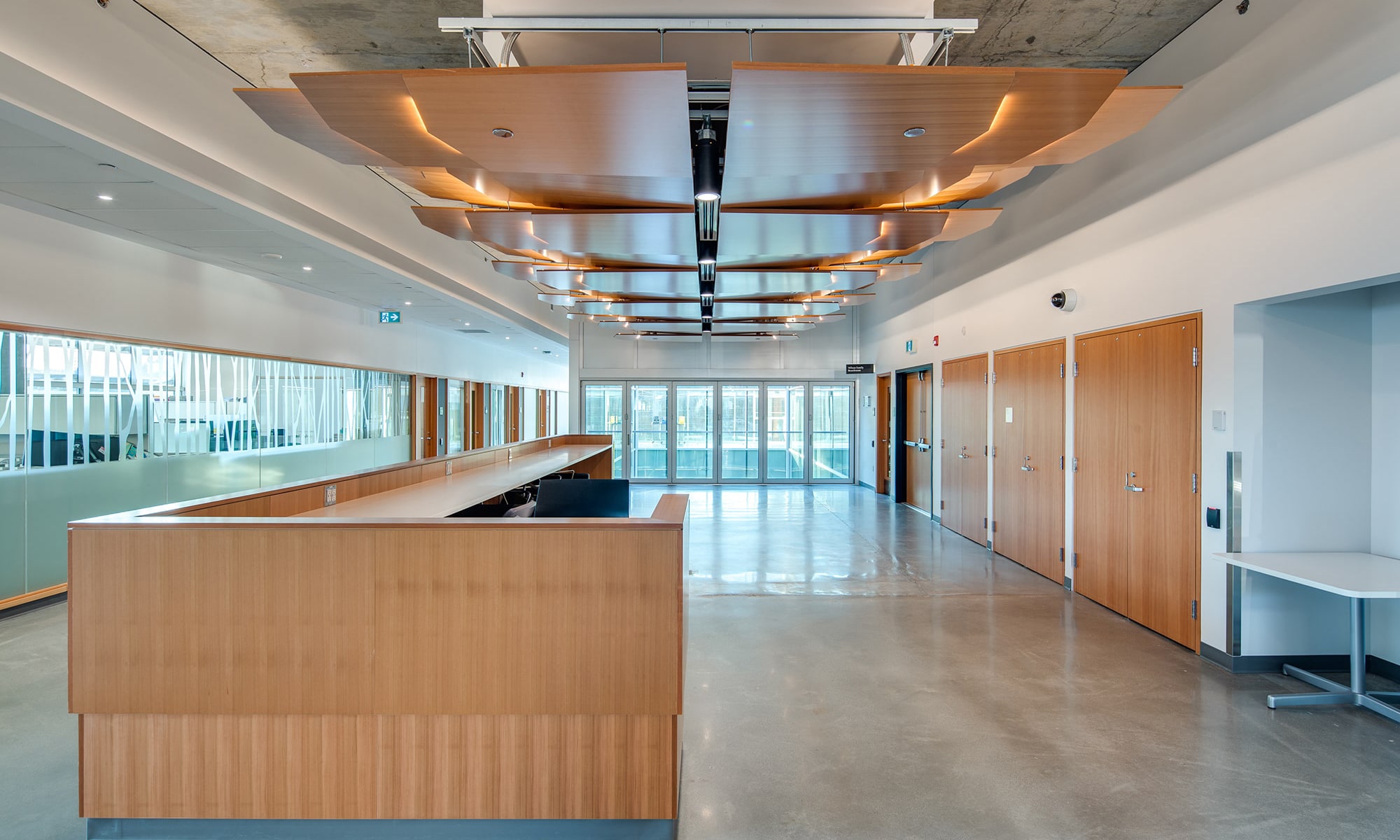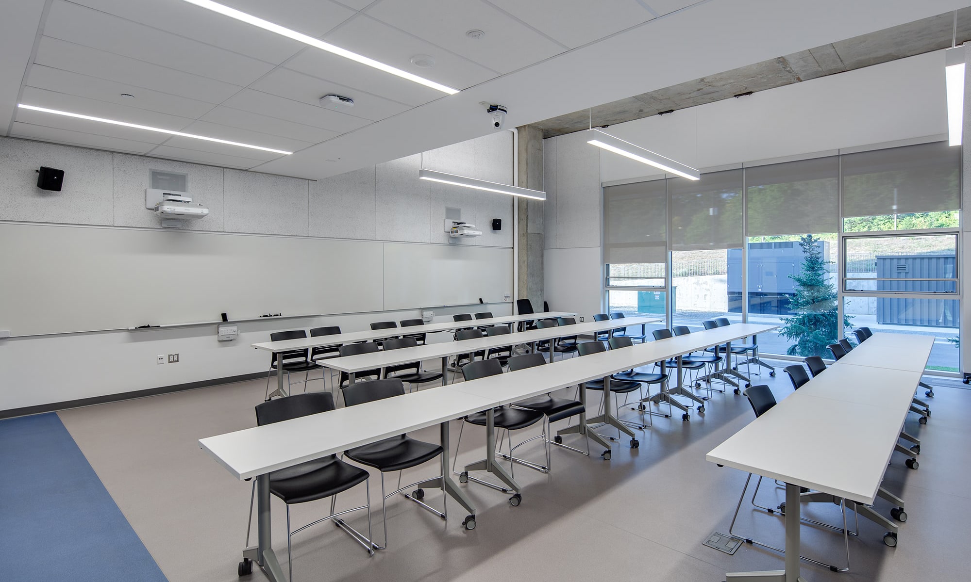 Breaking away from conventional classroom structures, the focus extended to indoor lighting, where luminaires from prominent brands such as Cooper Lighting Solutions, Modern Forms, Kelvix, and Finelite adorn the space, with a preference for suspension or surface-mounted installations.