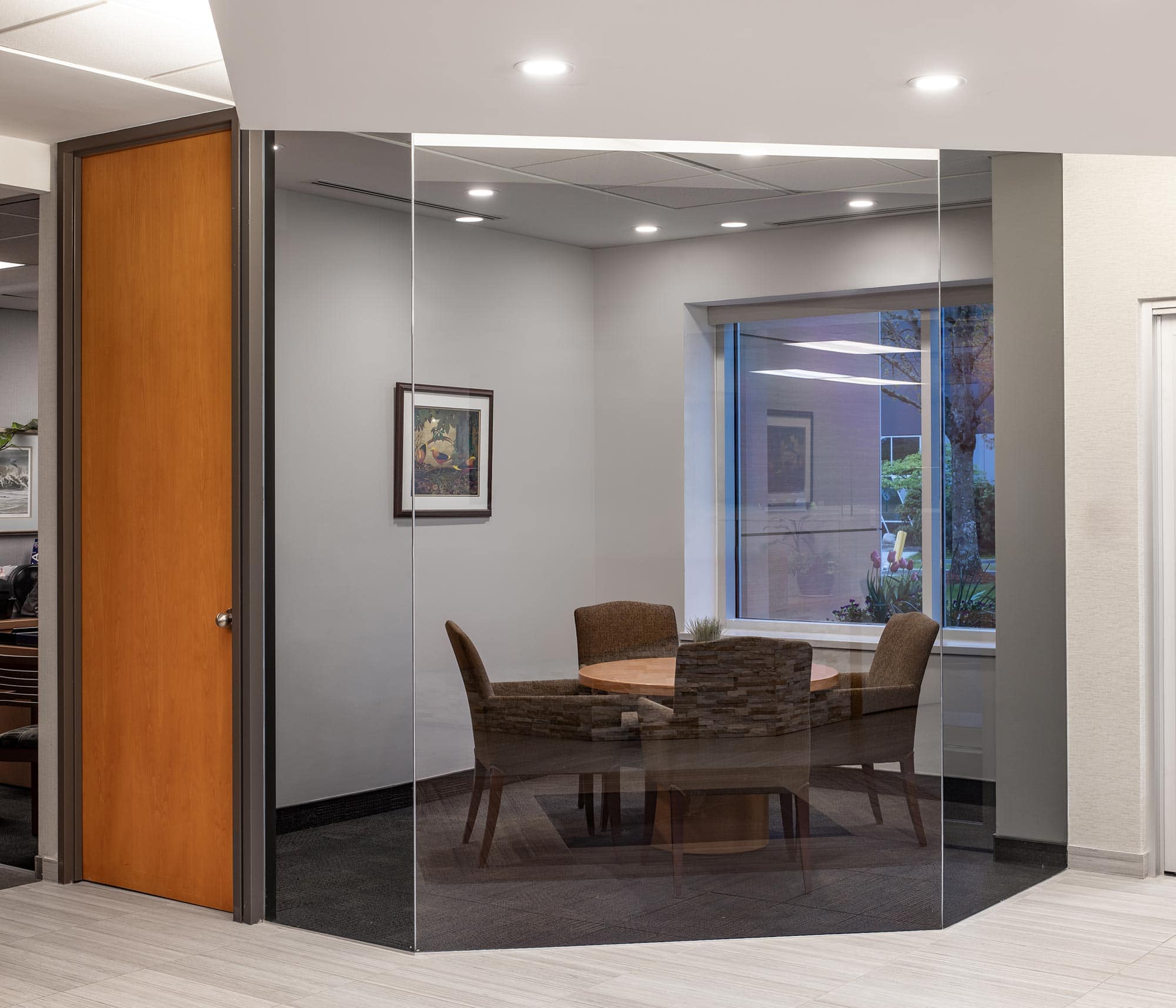 Additionally, the office space featured several Cooper Lighting HALO downlights, known for their powerful illumination. These downlights contributed to the overall brightness and functionality of the workspace, ensuring that all areas were well-lit.