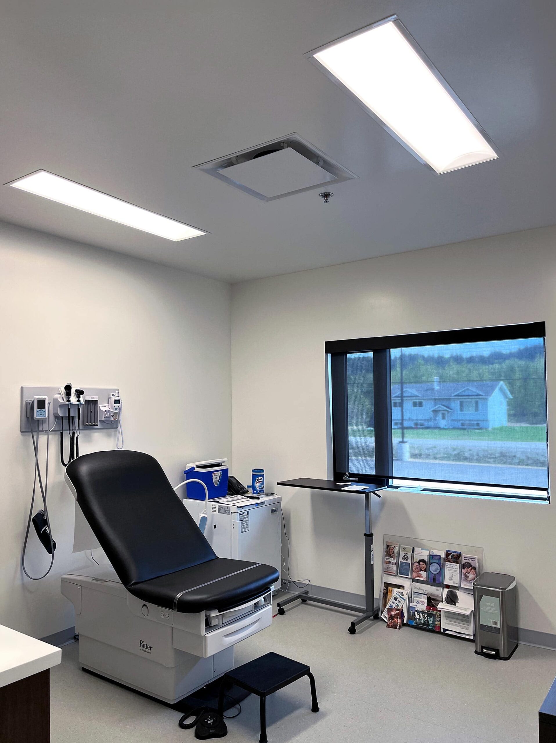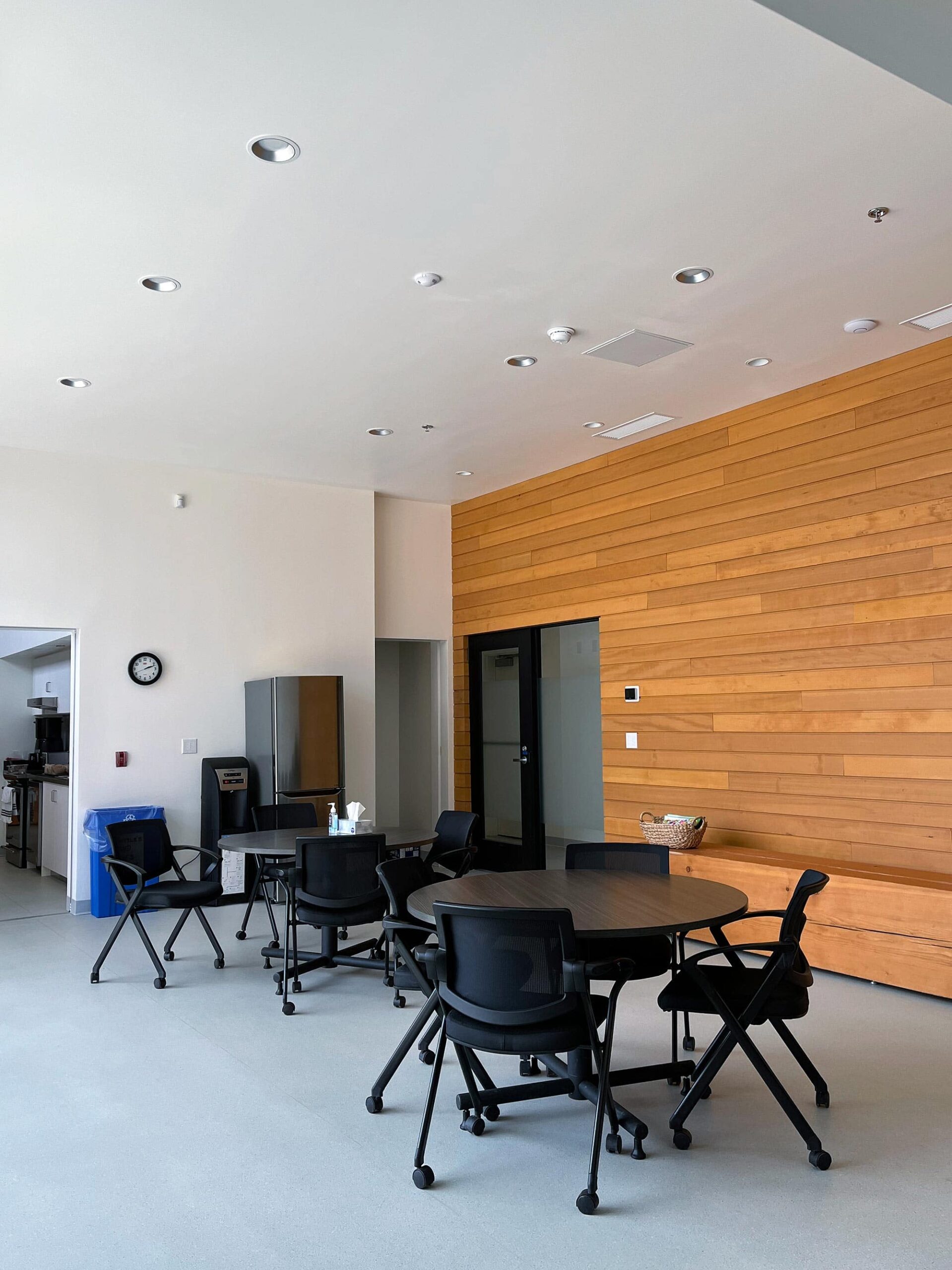 The Lheidli T’enneh Health Centre, located in Prince George, BC, is a state-of-the-art facility designed to provide comprehensive healthcare services to the Lheidli T’enneh First Nation and the surrounding community. The centre boasts two patient examination rooms, offices, a boardroom, a lab room for water testing and medical supplies, accessible bathrooms with lifts for elder care, a mobile support room for counselling, a kitchen, and multiple meeting rooms.