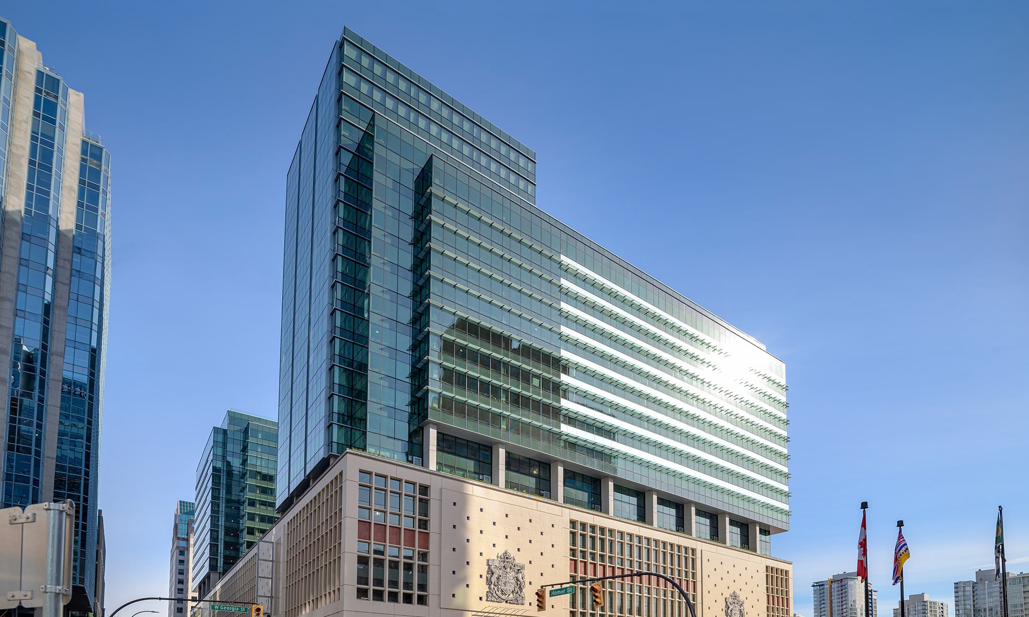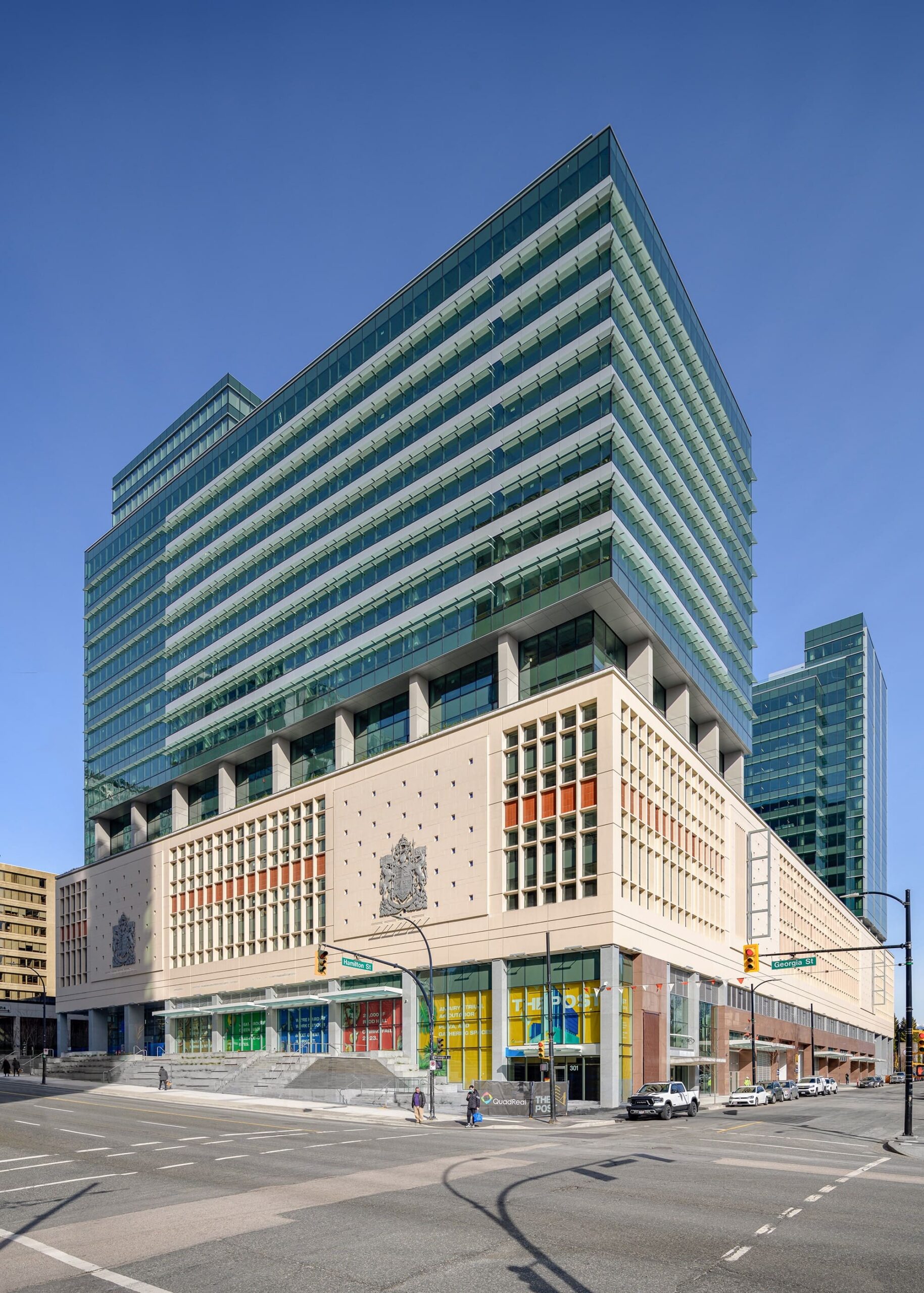 The Post, located in the heart of Downtown Vancouver’s four most prominent streets: Homer, Dunsmuir, Hamilton and W. Georgia, has been redeveloped from a mid-century Canada Post distribution facility into a modernized smart multi-use building. Proclaimed as ‘Vancouver’s Future’ and the most ambitious heritage redevelopment in Canada’s history, the building will be a 1-block hub for Vancouverites and travellers to experience dining, wellness, and retail, as well as become a 1.1 million sqft office space for Amazon.