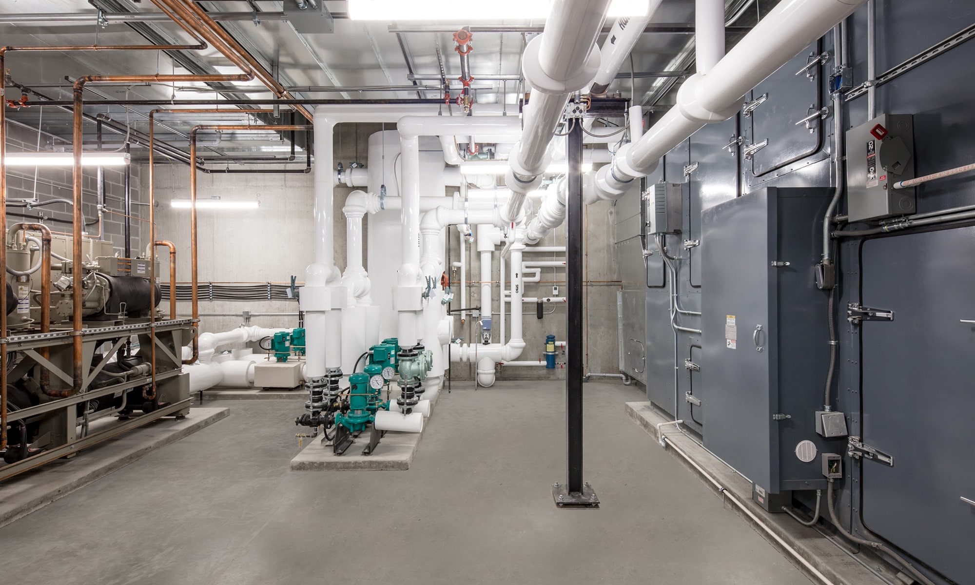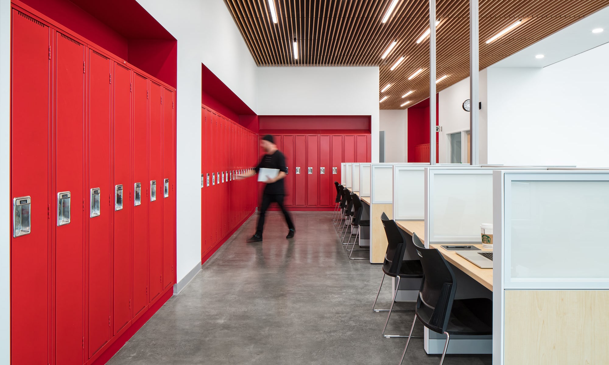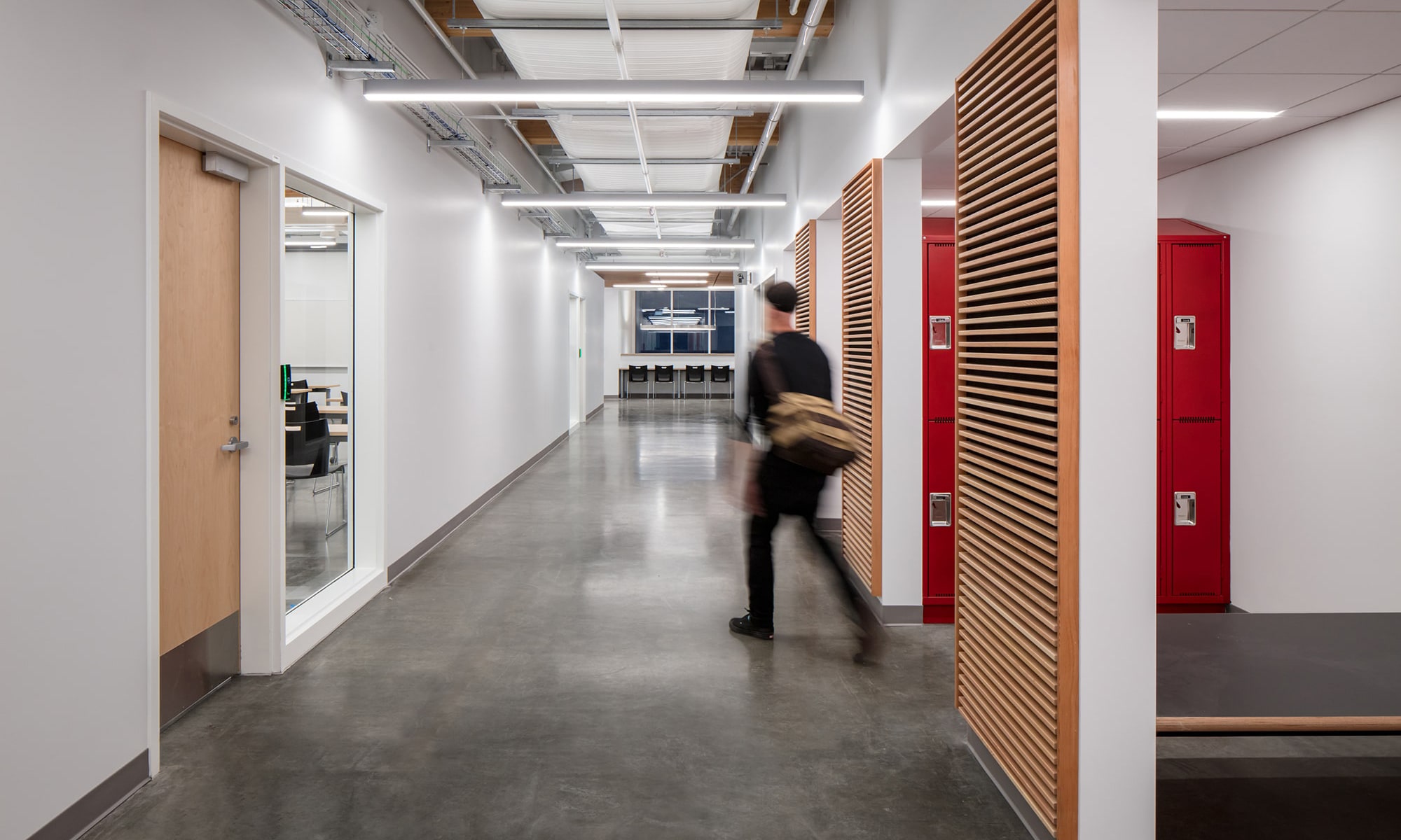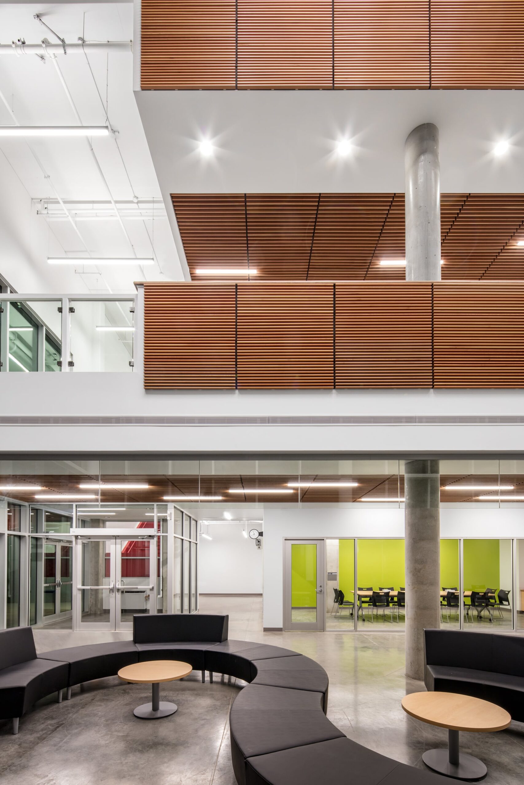 Additional lighting by Metalux, Lumark, Portfolio and Axis Lighting is also prominently used throughout the facility, both complement the linear architectural style and eco-friendly initiatives; key highlights include: